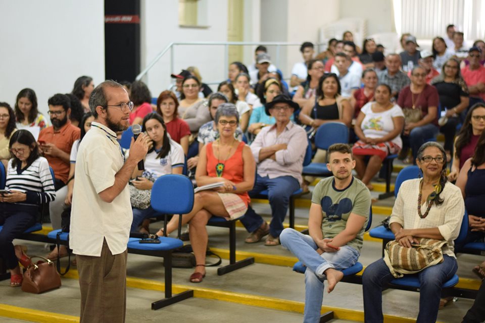 O terceiro e último dia do "Encontro de Saberes: Comunidades camponesas e academia construindo a resistência na Chapada do Apodi" foi marcado por uma participação expressiva dos camponeses que lotaram o auditório do Sindicato. Após o momento místico de abertura, a plenária dialogou sobre “A luta das comunidades camponesas em defesa de seus territórios” que teve como painelistas a Profa. Dra Raquel Rigotto (Núcleo Tramas – UFC) e o Prof. Dr. Carlos Walter (LEMTO – UFF).