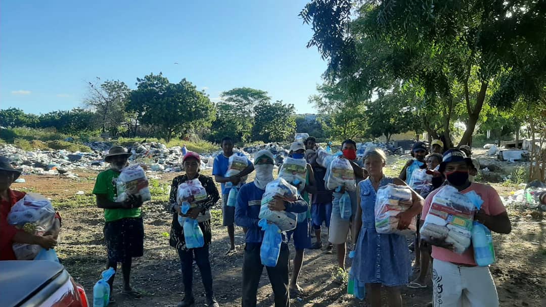 Imagem: Entrega de alimentos a catadores e catadoras de materiais recicláveis, em Cajazeiras/PB. Crédito: CPT Equipe Cajazeiras/PB.