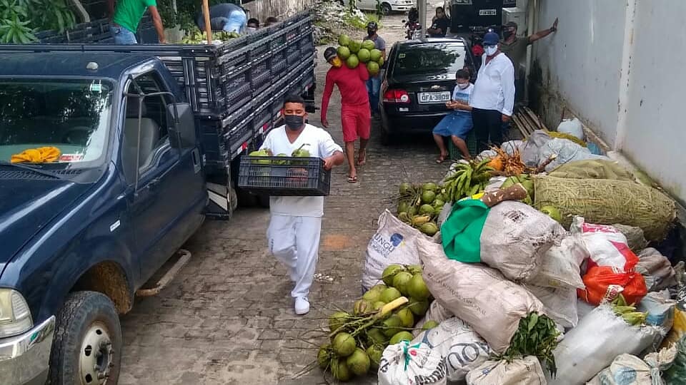 Imagem: Partilha de alimentos da agricultura camponesa com a Ação Social da Arquidiocese (ASA) e com o Hospital Zé Pedro, em João Pessoa. Cerca de 7 toneladas de alimentos foram doados. Crédito: CPT Equipe João Pessoa/PB.