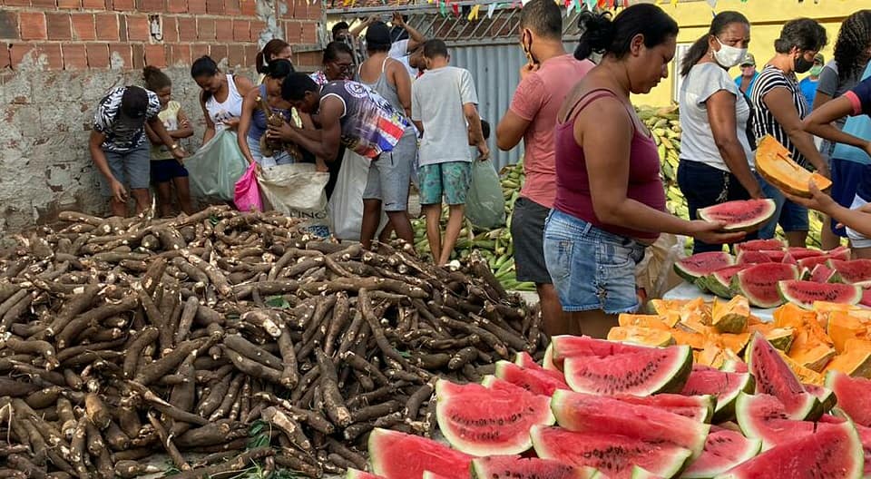 Imagens: Doação de alimentos da agricultura camponesa para famílias do bairro de Jacintinho, em Maceió/AL. Cerca de 12 toneladas de alimentos foram doados. Crédito: CPT Equipe Alagoas