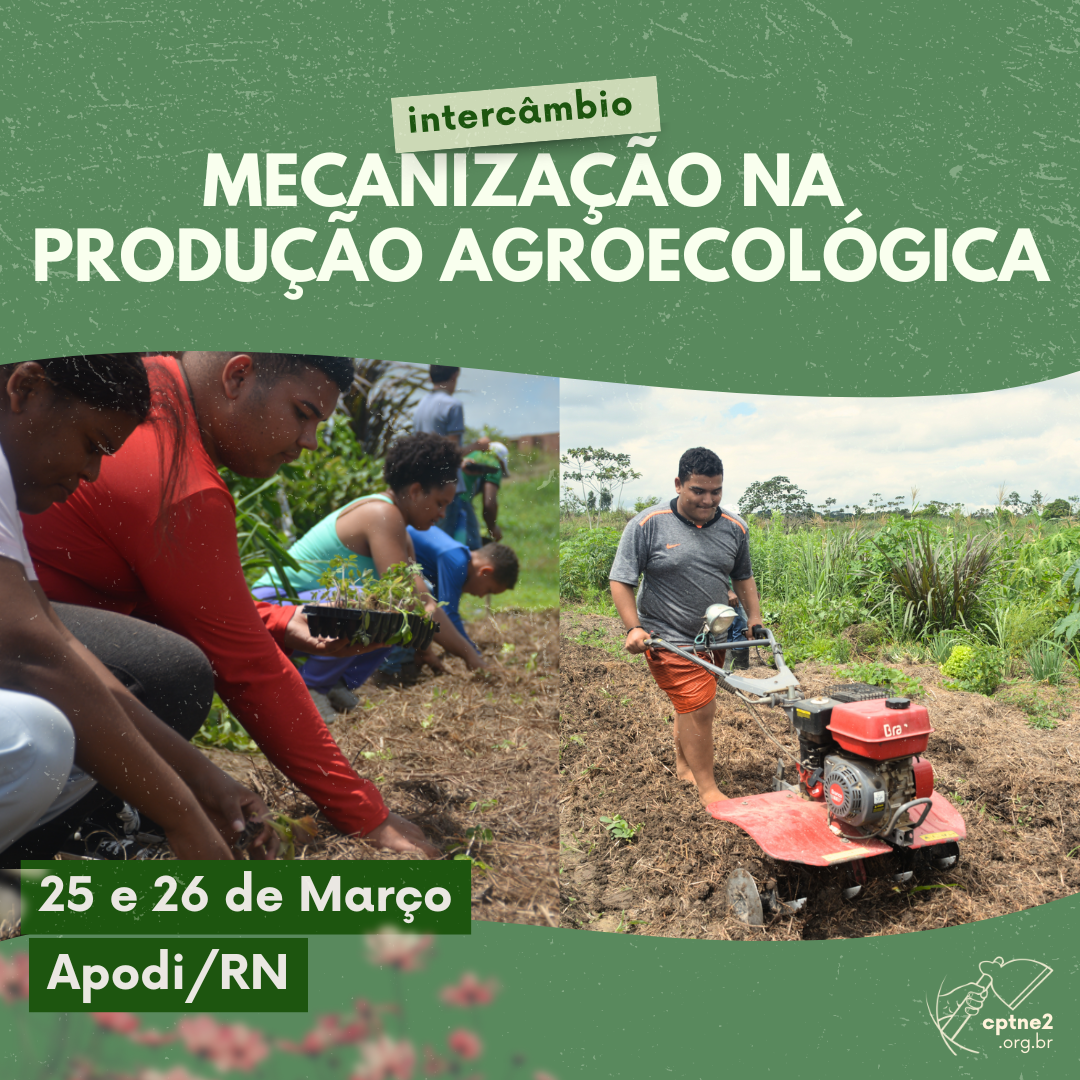 Camponeses e camponesas de comunidades acompanhadas pela CPT na Zona da Mata de Pernambuco e no Oeste do Rio Grande do Norte participarão de um intercâmbio para trocar experiências sobre produção agroecológica e mecanização da agricultura camponesa nos próximos dias 25 e 26 de março. O objetivo do encontro é ser um espaço de fortalecimento da luta camponesa em defesa da terra, dos territórios e da produção agroecológica e aprofundar o debate e a formação sobre a mecanização na produção agroecológica.