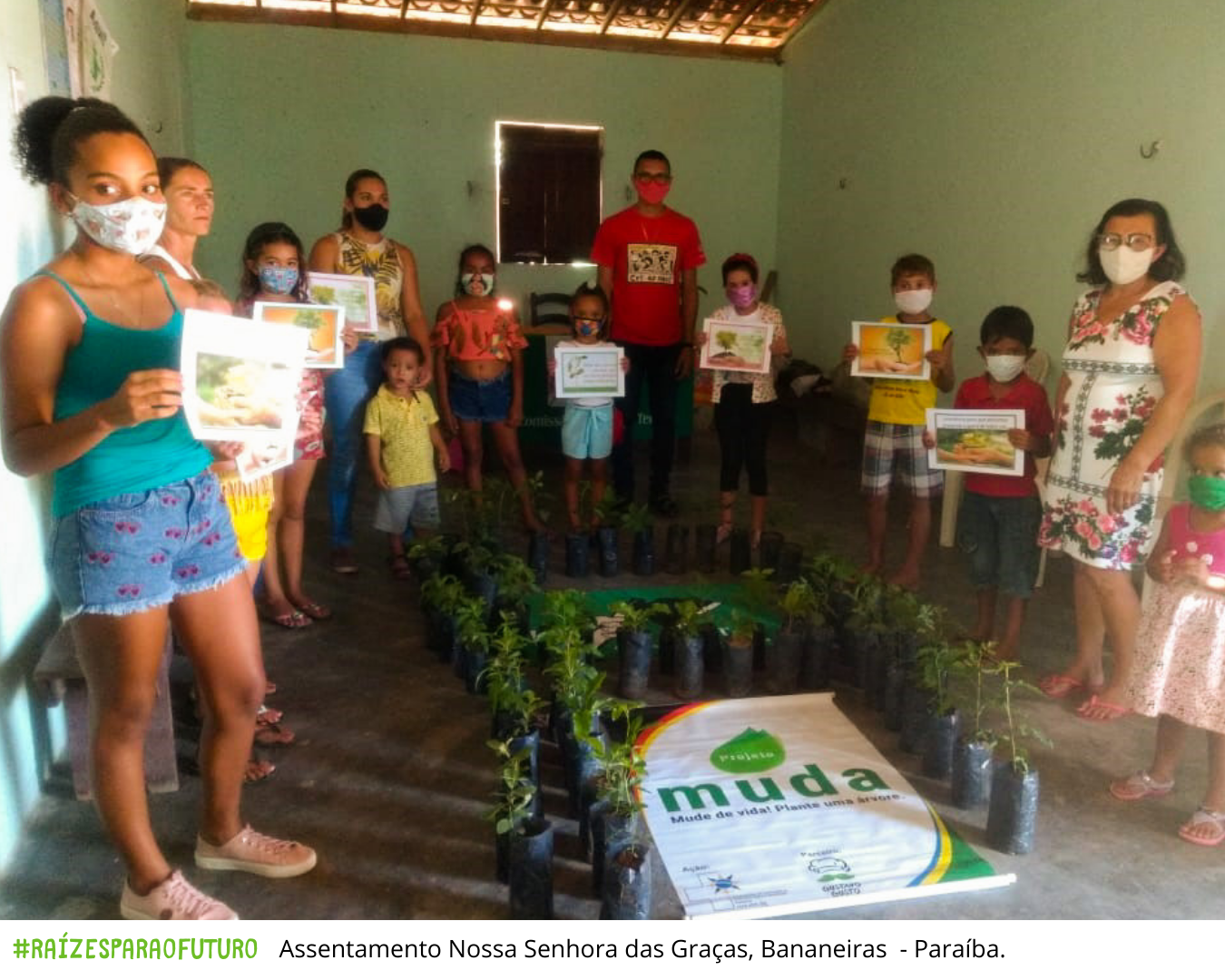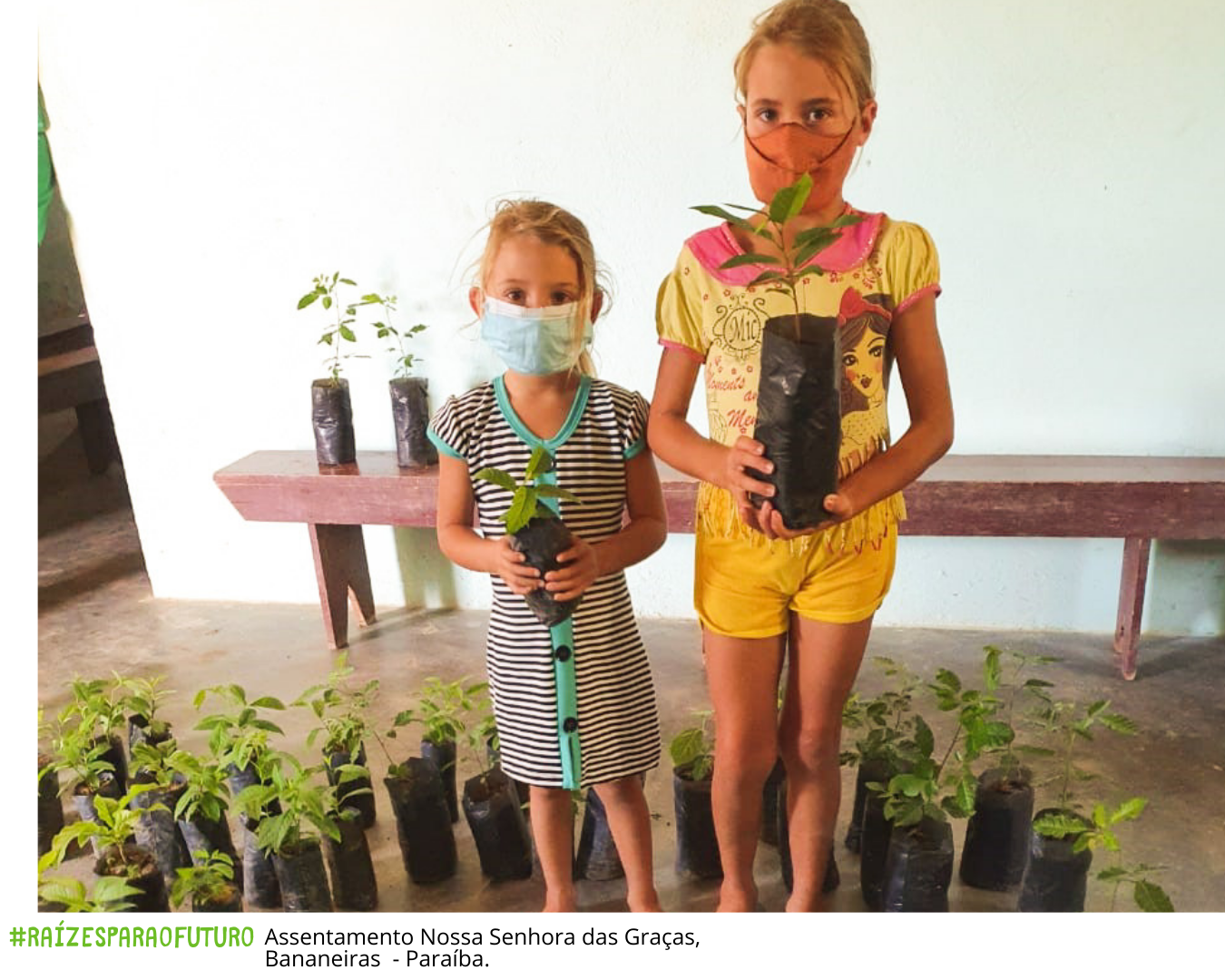 Já no dia 16 de outubro, cinquenta mudas de árvores frutíferas e de plantas ornamentais foram entregues a crianças das comunidades dos assentamentos Redenção, em Pilões, e de Nossa Senhora das Graças, em Bananeiras, na Diocese de Guarabira. Cada criança camponesa levou uma muda para plantar no quintal da casa. A distribuição foi realizada pela CPT e contou com a parceria da Pastoral da Criança, da Associação Comunitária do Assentamento Nossa Senhora das Graças e da Associação de Formação e Incentivo para o Nordeste Karente (AFINK). A entidade tem distribuído por todo o estado da Paraíba mudas de diversas espécies contribuindo com a preservação ambiental. “Plantar árvores com crianças e adolescentes é garantir uma nova consciência ecológica em busca de uma nova sociedade. É um grande gesto de amor e de conexão com a Casa Comum e possibilita que tenhamos um presente e um futuro em que a Vida e a Criação sejam respeitadas”, acredita Joseane Souza, agente da CPT na Diocese de Guarabira.