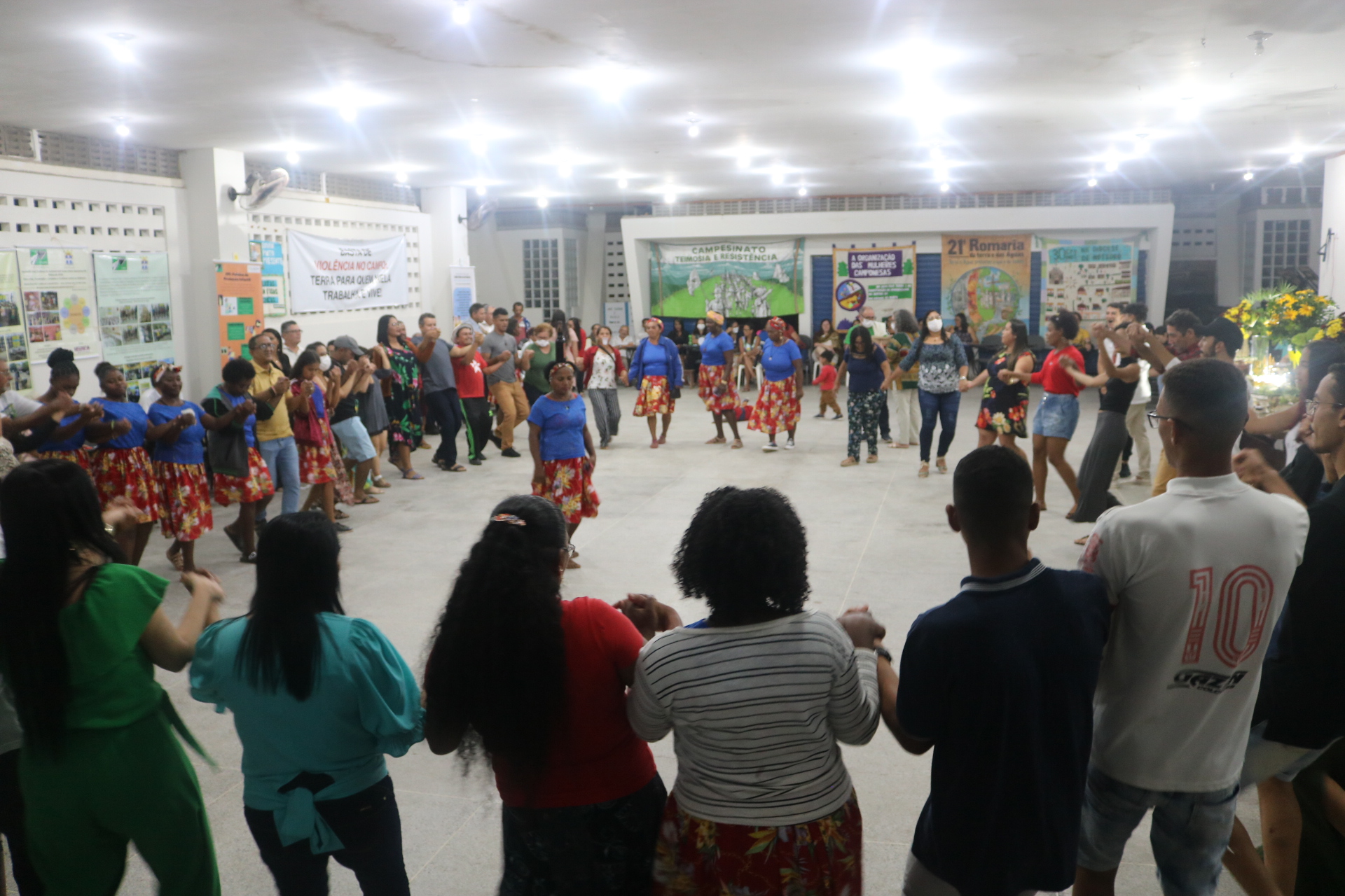 O monge Marcelo Barros e o Padre Hermínio Canova chamaram atenção que tanto Ana Maria quanto Maria do Bosque falaram em amor pela terra. A primeira disse “eu amo a terra”, e a segunda, “casamento com a terra”. Por meio das palavras das agricultoras, os religiosos travaram um diálogo sobre amor, cuidado, espiritualidade, sobriedade e profecia, ressaltando como os povos do campo são portadores de um mundo possível e necessário. Ainda no dia 10, durante a noite, ocorreu a homologação da nova coordenação regional da CPT NE2 e dos novos conselheiros e conselheiras da Pastoral para os próximos três anos. A noite também foi embalada por muita cultura popular, com a apresentação do grupo de cirandeiras Caiana dos Crioulos, que veio lá do município de Alagoa Grande (PB), onde viveu Margarida Maria Alves.