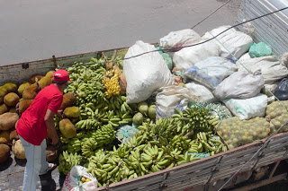 Trabalhador em caminhão com produtos trazidos do campo. Foto: Gustavo Marinho