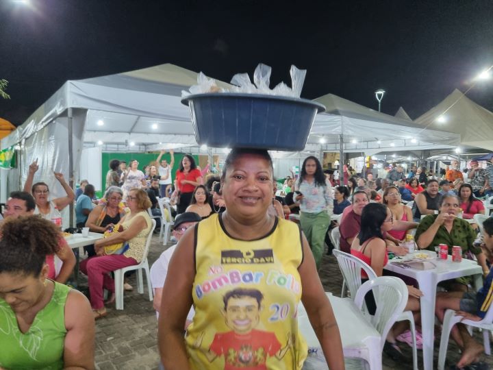"Eu ando na feira há muitos anos. Sou a vendedora mais antiga aqui. Tenho 48 anos, 8 filhos, 8 netos", disse a ambulante Elizete Mendes dos Santos. É verdade. Elizete marcou presença em todas as edições da Feira Camponesa e é possível verificar isso em fotos antigas, sempre dançando com uma bacia na cabeça. Ela contou que vai à feira com objetivo de vender os amendoins, ovos de codorna e camarões para pagar o aluguel de sua casa e ajudar sua filha, que teve neném.