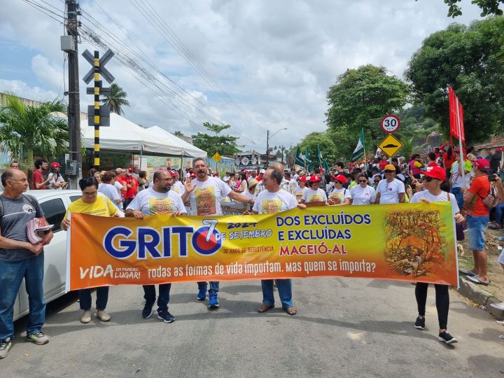 No dia 7 de setembro, em Maceió (AL), o Grito dos Excluídos e Excluídas marcou seus 30 anos de resistência com a denúncia do crime ambiental provocado pela mineradora Braskem. O ato ocorreu nas comunidades dos Flexais de Cima e de Baixo. A concentração começou às 8h em frente ao CEEL - Parque da Lagoa, reunindo movimentos sociais, pastorais, sindicatos e moradores da área.