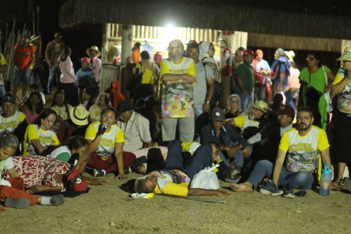 Após a entronização da "Cruz Sem Males" - símbolo da romaria que indica a direção da "Terra sem Males" - os fiéis assistiram ao filme da Campanha Nacional Contra a Violência no Campo, que trouxe à tona dados históricos sobre a violência contra povos do campo, das florestas e das águas.