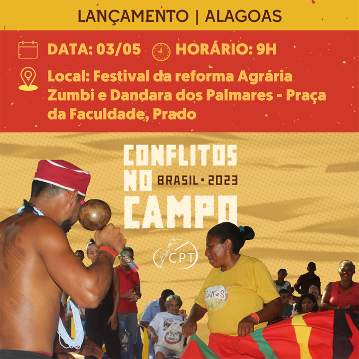 Em Alagoas, o lançamento da publicação Conflitos no Campo Brasil 2023 será realizado durante o Festival da Reforma Agrária Zumbi e Dandara dos Palmares, realizado pelas organizações e movimentos sociais do estado.