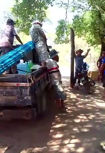 De acordo com os agricultores e agricultoras, Eutropio Maria Vasconcelos Filho, conhecido como Muido de Tropinho, chegou ao local em sua caminhonete D20, cor azul, carroceria de madeira, transportando canos e motores. Portando uma arma de fogo na cintura, ele afirmou que iria tirar água do cacimbão para dar aos animais. No momento que tentou adentrar com a caminhonete no sítio, foi impedido pelos moradores, que logo chegaram ao local.