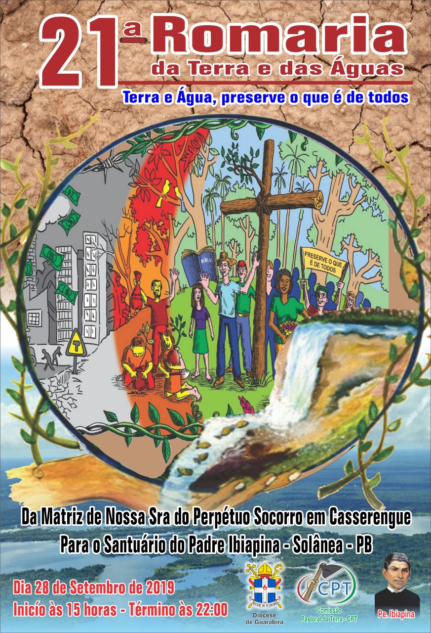 No dia 28 de setembro de 2019, será realizada a 21ª Romaria da Terra e das Águas da Diocese de Guarabira/PB. Organizada pela Diocese de Guarabira/PB e pela Comissão Pastoral da Terra, a Romaria deste ano terá como tema “Terra e Água: preserve o que é de todos!”. O percurso será de aproximadamente 10 quilômetros e terá início na Matriz de Nossa Senhora do Perpétuo Socorro, no município de Casserengue, com destino ao Santuário do Padre Ibiapina, em Solânea/PB. A concentração será a partir das 15h.
