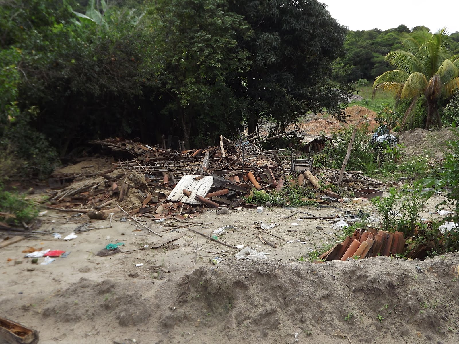 Abaixo imagens das casas destruídas no despejo. A área que antes era tradicionalmente ocupada pelos agricultores será agora destinada aos trilhos da Transnordestina, que será ligada ao Porto de Suape.
