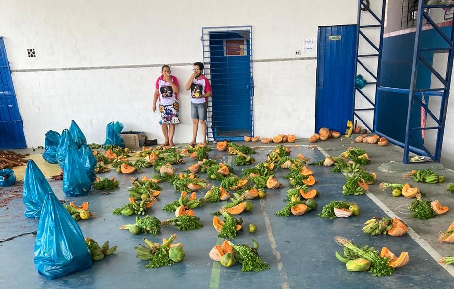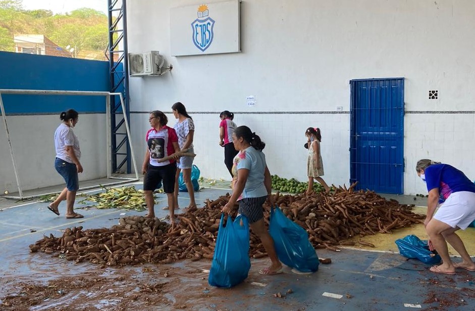 Milho, laranja, mamão, macaxeira, banana, jerimum, inhame, batata, limão e coentro: tudo produzido e doado por famílias agricultoras das comunidades Dom Helder Câmara, Sigiri e Belo Horizonte, localizadas no município de Aliança. Maria do Carmo dos Anjos, da comunidade Sirigi, foi uma das camponesas que participou da entrega. Ela comenta que foi emocionante. “A Paróquia estava toda mobilizada para nos receber e vimos a alegria nos rostos das pessoas, agradecendo pela doação. Foi muito bonito”, ressalta.