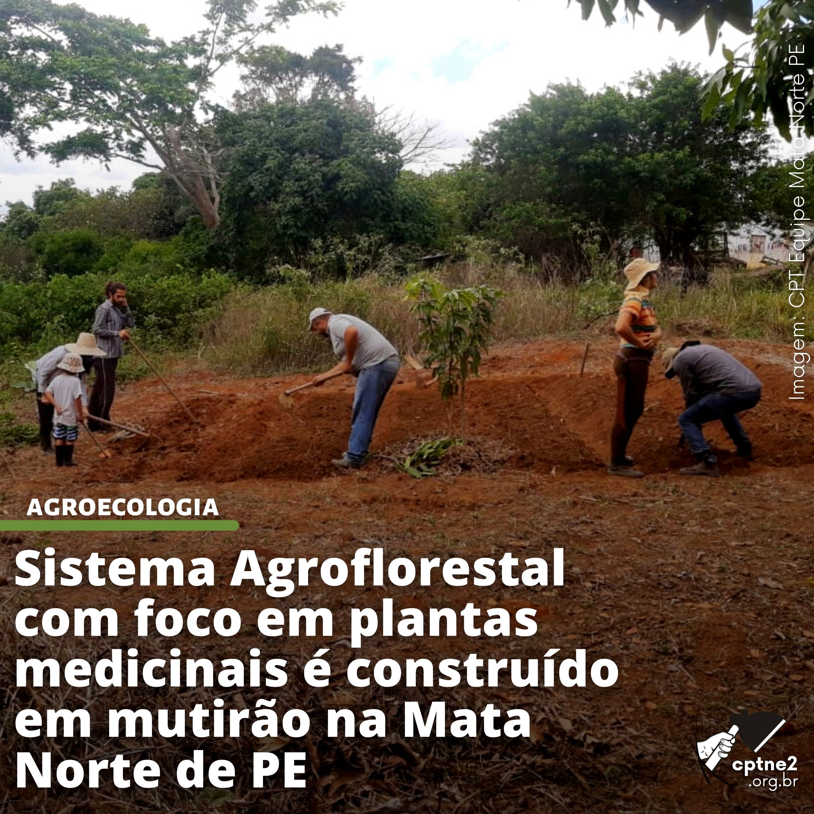 Camponeses e camponesas apoiados pela CPT na comunidade de Nova Canaã, em Tracunhaém (PE), realizaram mais uma experiência de trabalho coletivo, em mutirão. Desta vez o objetivo foi implantar um Sistema Agroflorestal (SAF) com foco no cultivo de plantas medicinais na parcela de uma das agricultoras da comunidade, Fátima Fernandes. O mutirão ocorreu na terça-feira, 18, e contou com o envolvimento de crianças, jovens, homens e mulheres da comunidade.