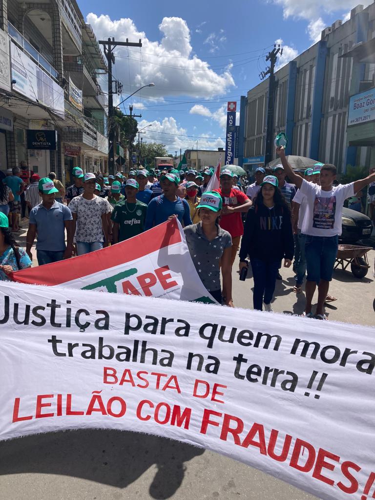 Portanto faixas com os dizeres “Queremos justiça para quem mora e trabalha na terra. Basta de leilões!”, os agricultores e agricultoras reivindicam a anulação dos leilões judiciais dos imóveis onde residem e exercem posse há décadas. As terras alvo dos leilões estão no nome de antigas e desativadas usinas produtoras de açúcar e álcool, as quais acumulam dívidas milionárias tanto com o poder público quanto com ex-trabalhadores e trabalhadoras.