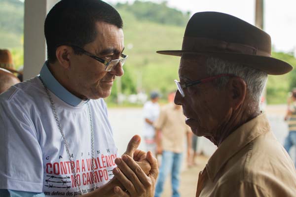 Presidente da CPT, Dom José Ionilton, dialoga com um dos agricultores mais antigos da comunidade de Fervedouro - Jaqueira - 13.11.2022