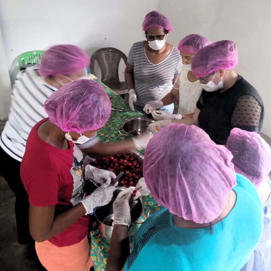 Mulheres camponesas da comunidade Padre Tiago, em Moreno (PE), estão ampliando a sua organização e suas estratégias para garantir mais renda e autonomia! Isso tem acontecido por meio de algumas atividades como oficinas de beneficiamento de alimentos que são fartos na comunidade. No último dia 10, um grupo de mulheres da comunidade participou de uma oficina de produção de geleias artesanais organizada com o apoio da CPT.