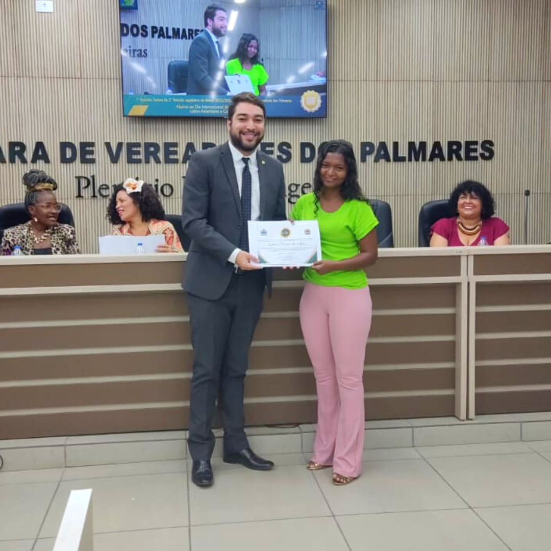 No último dia 30 de novembro, a jovem camponesa e agente pastoral da CPT Edina Maria da Silva foi homenageada pela Câmara Municipal de Palmares, na Mata Sul de Pernambuco, em reconhecimento ao seu compromisso e trabalho com as mulheres camponesas do município. A homenagem foi concedida em comemoração ao Dia da Mulher Negra Latino-Americana e Caribenha, celebrado em 25 de julho.
