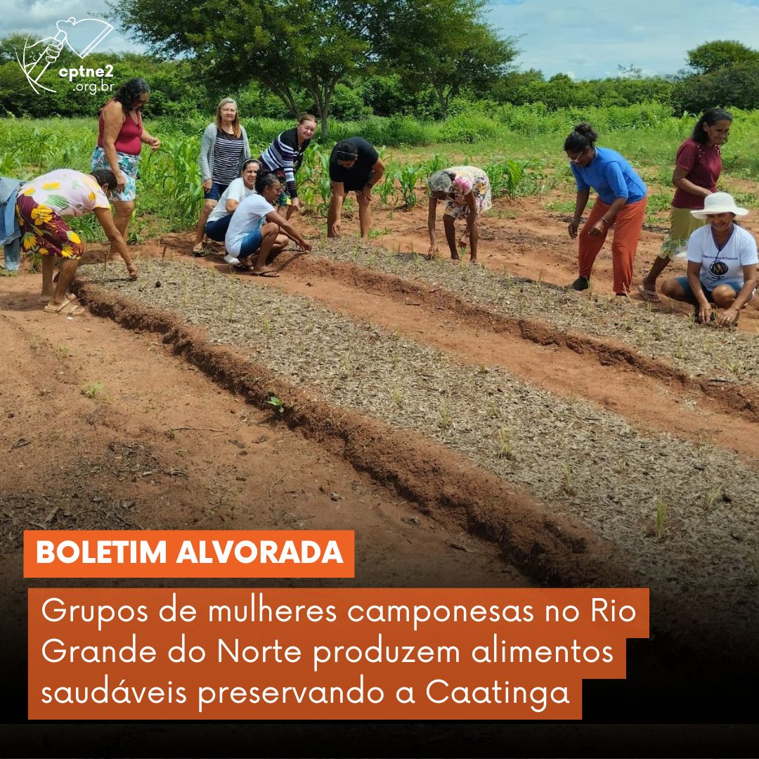 #Boletim Alvorada - A Comissão Pastoral da Terra (CPT) Nordeste 2 apresenta mais uma edição do Boletim Alvorada. Nesta edição, partilhamos a experiência de grupos de mulheres camponesas no Oeste do Rio Grande do Norte, que preservam a Caatinga com as próprias mãos enquanto produzem alimentos saudáveis.